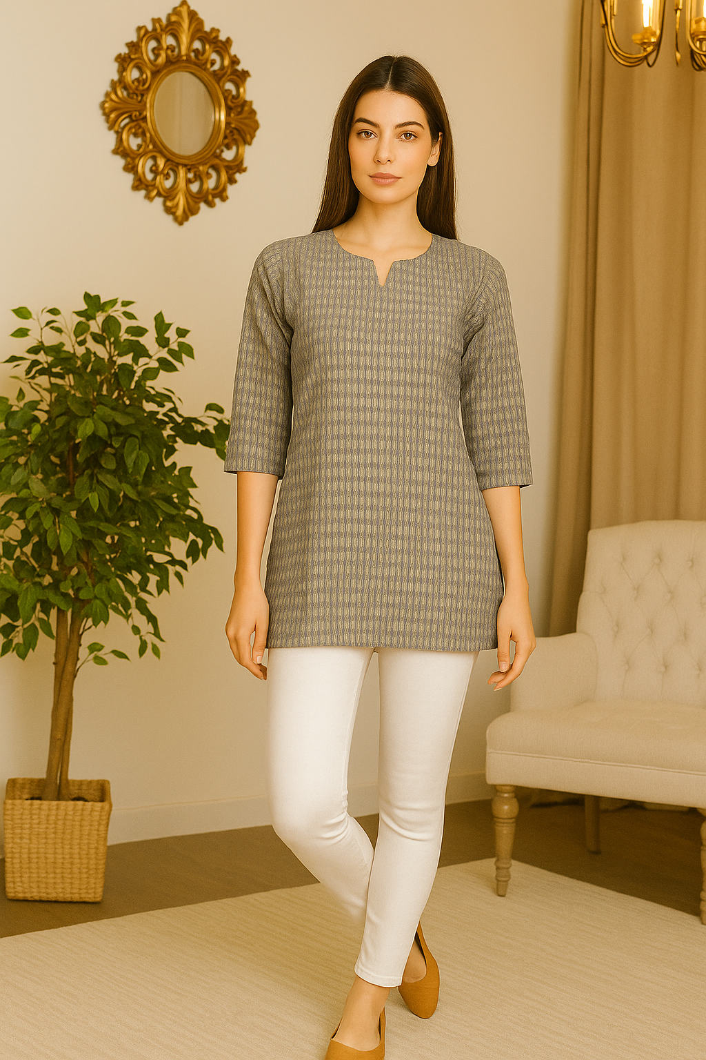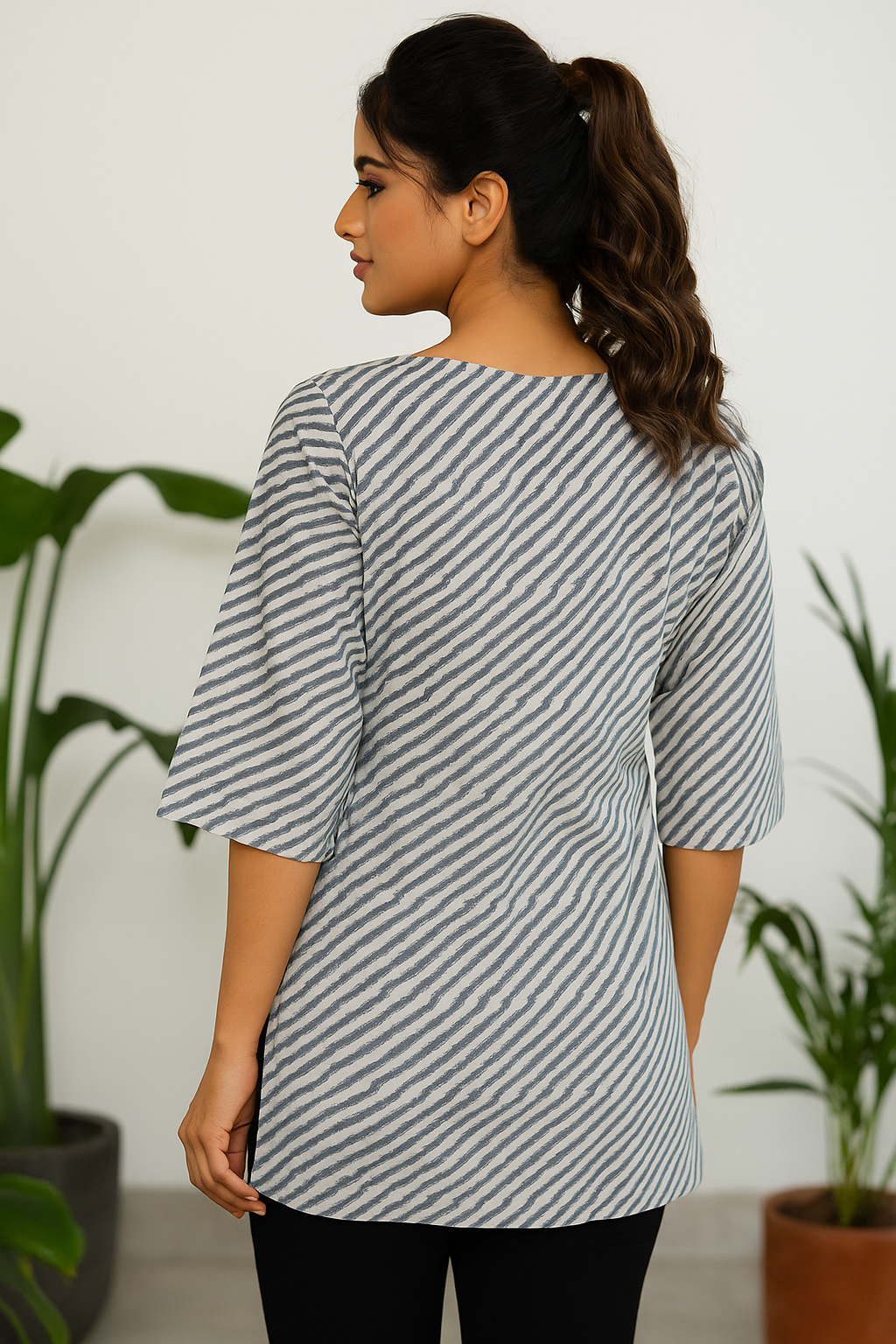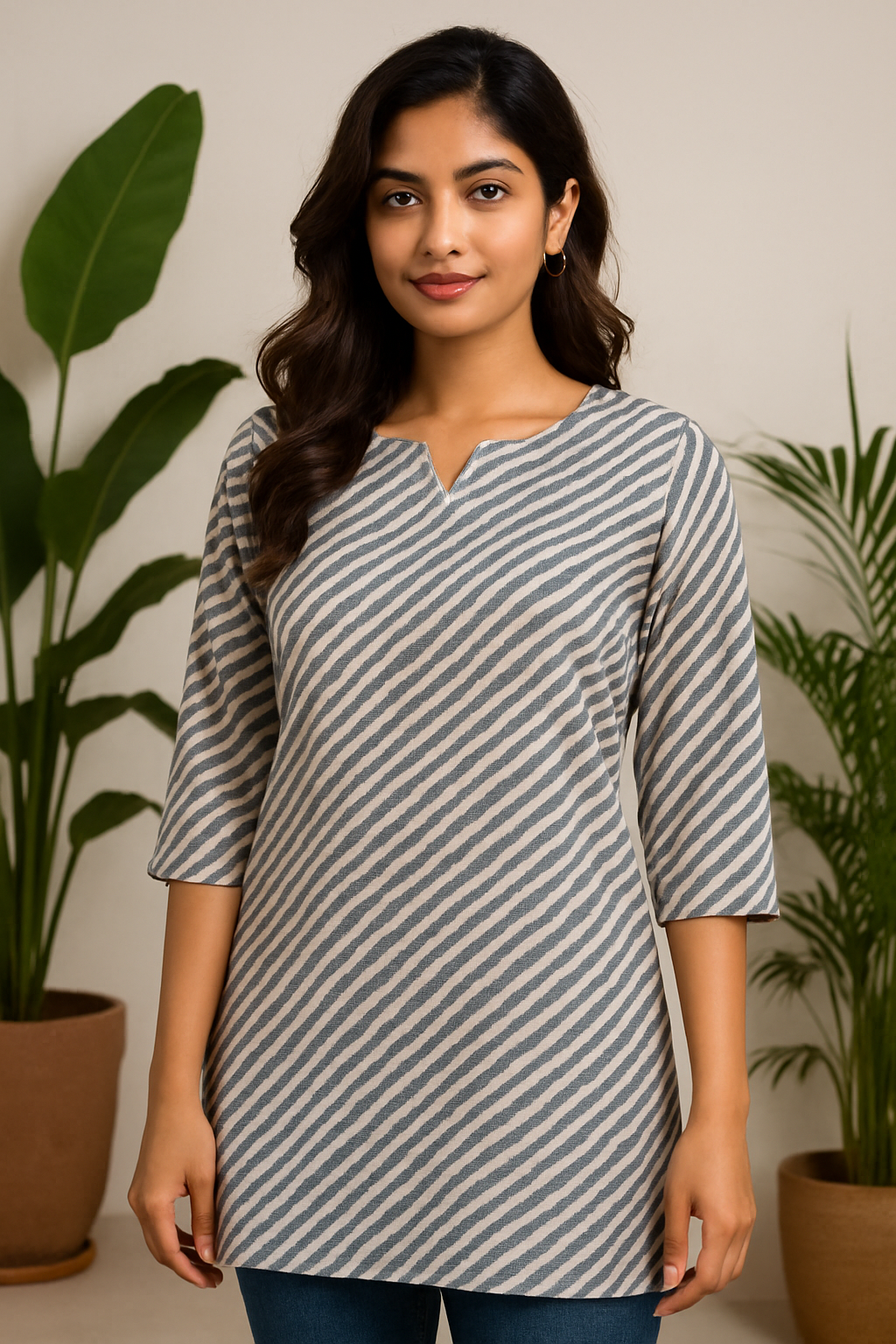 Grey and White Diagonal Stripe Poly Cotton Comfort Tunic