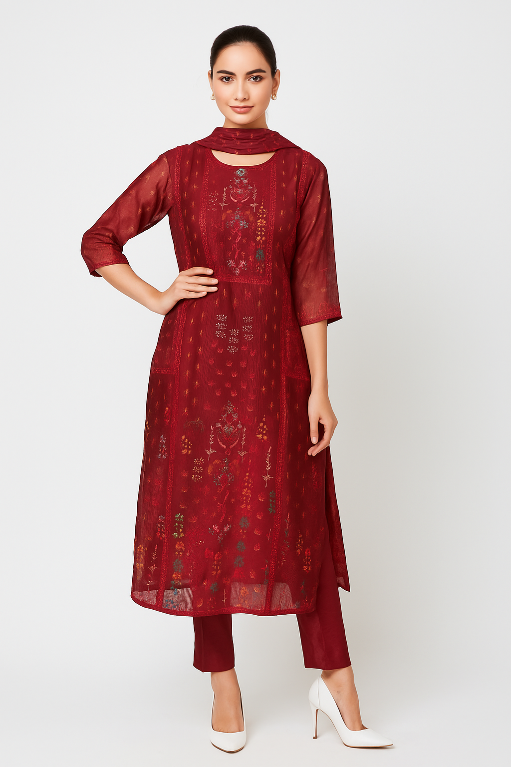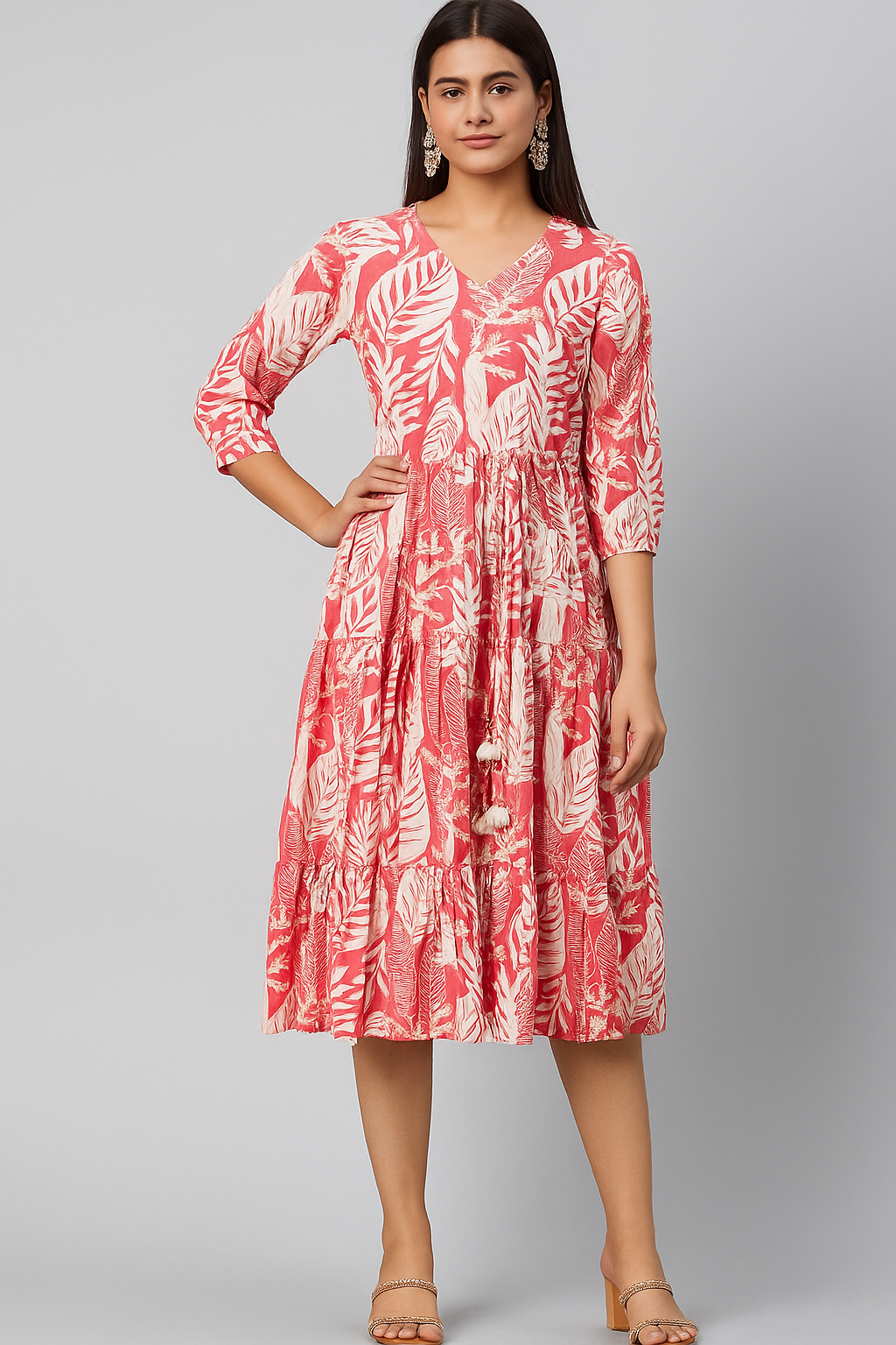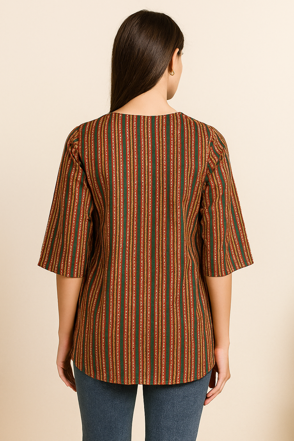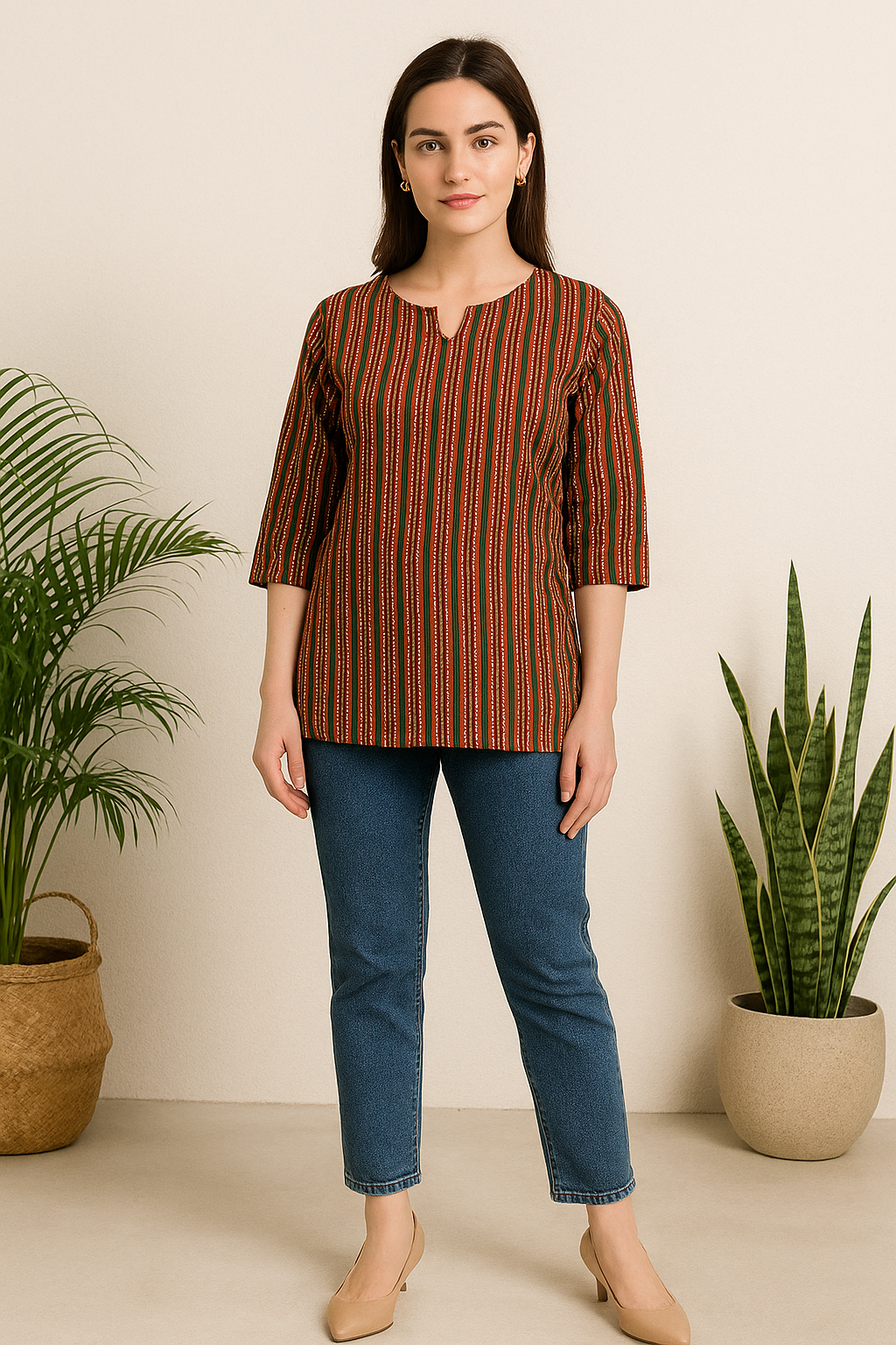 Red & Mustard Zigzag Printed Poly Cotton Tunic