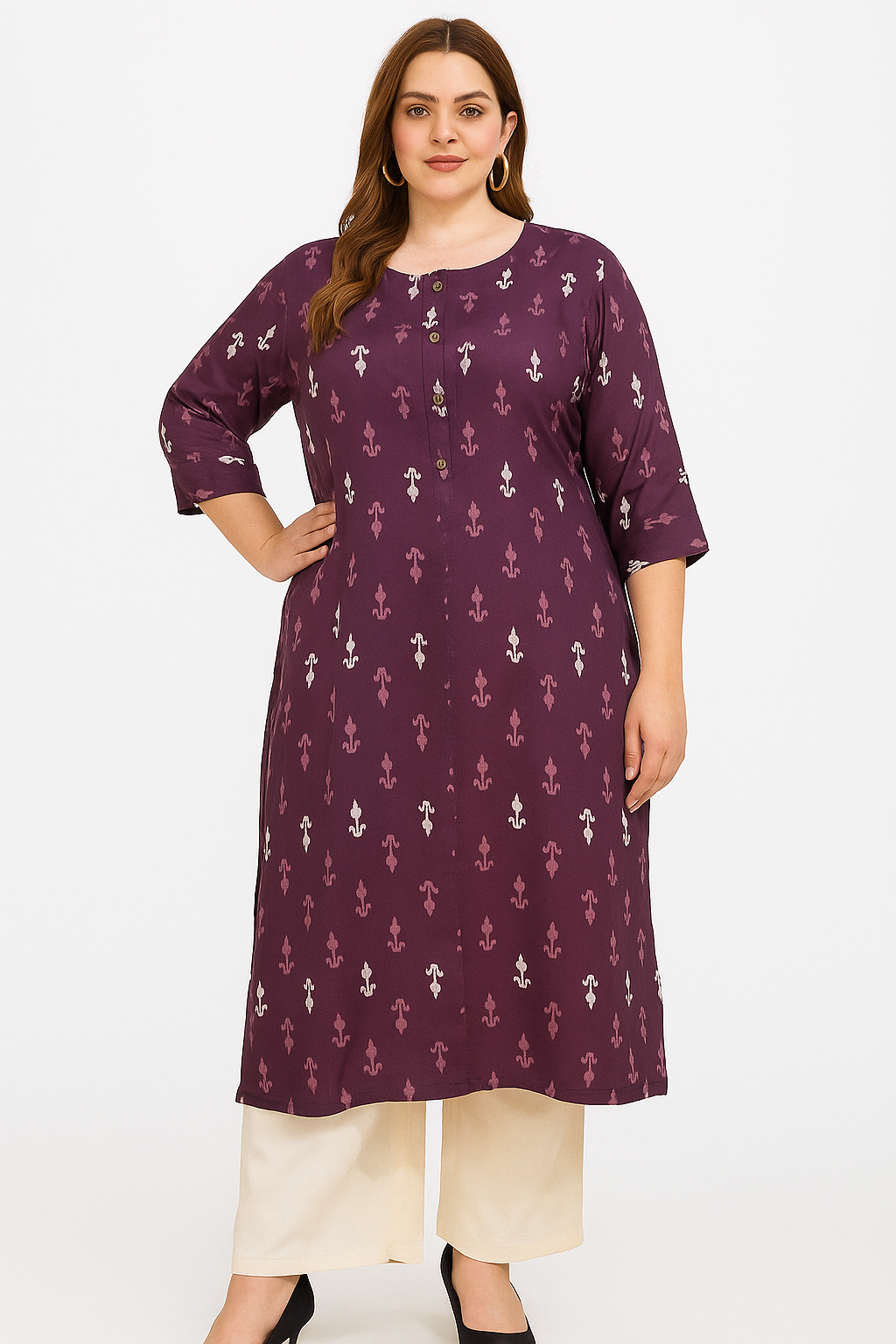 Purple Plus Size Rayon Kurti with White Rubber Print