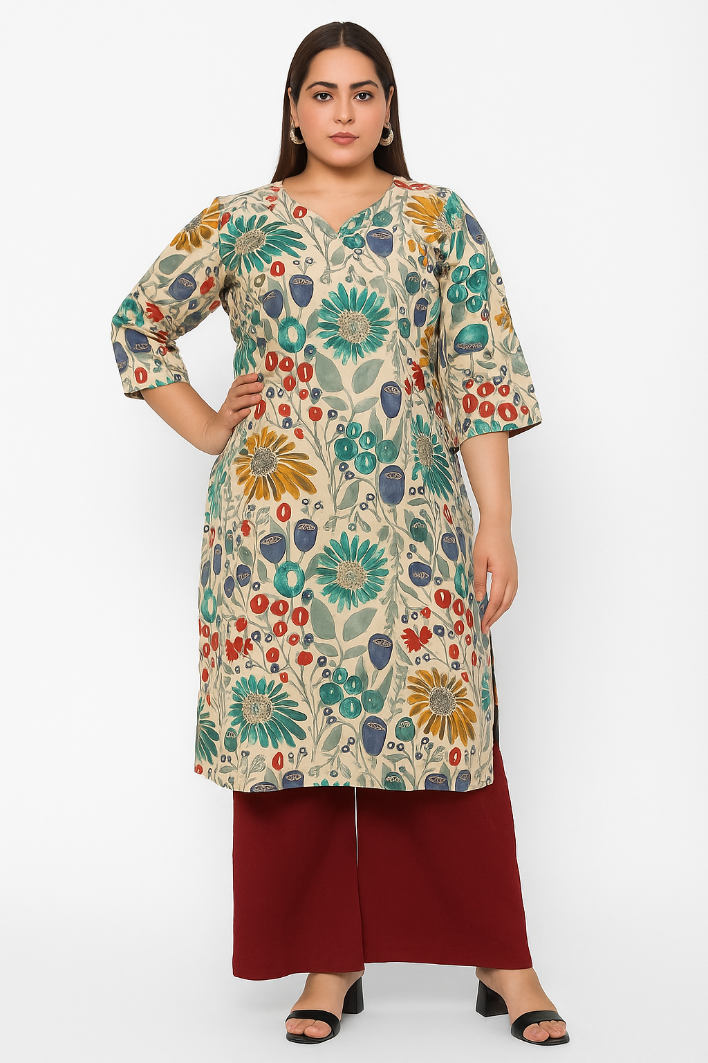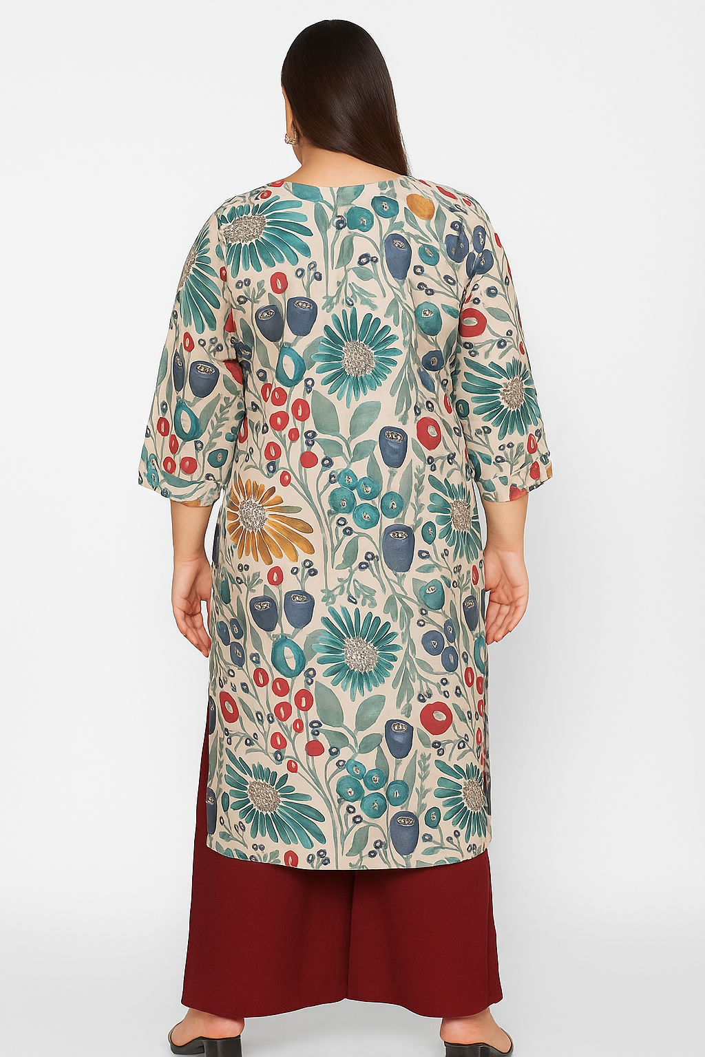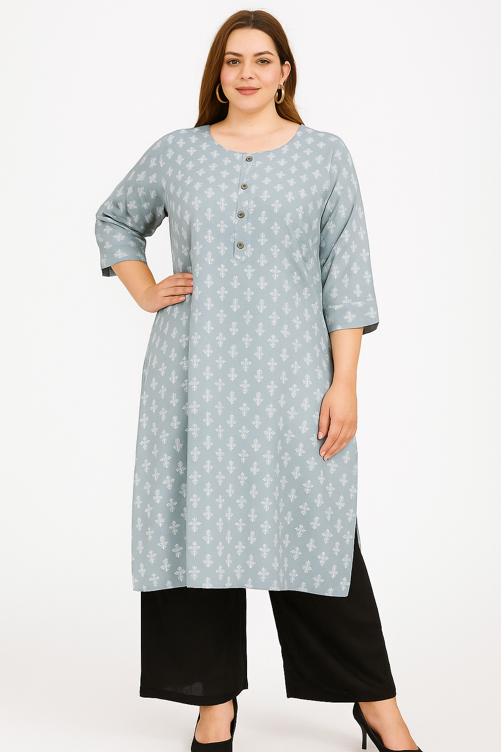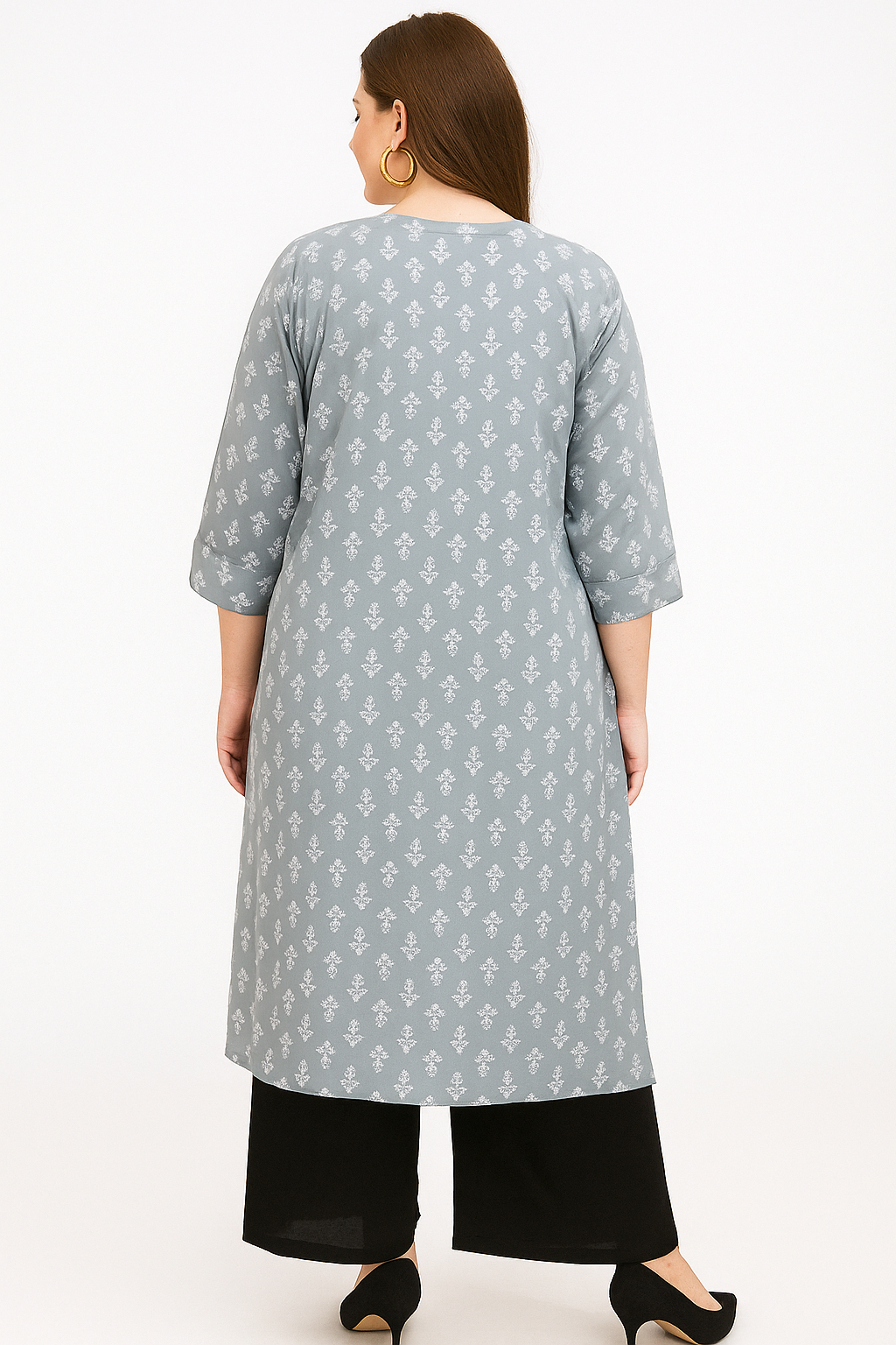 Grey Plus Size Rayon Kurti with White Rubber Print