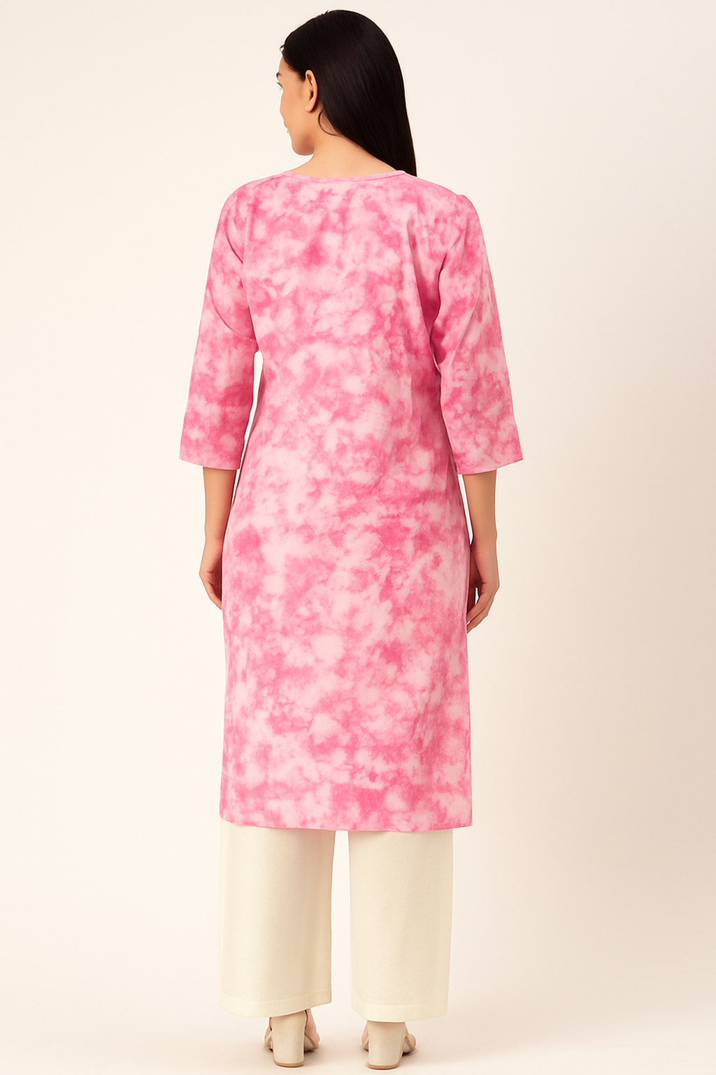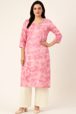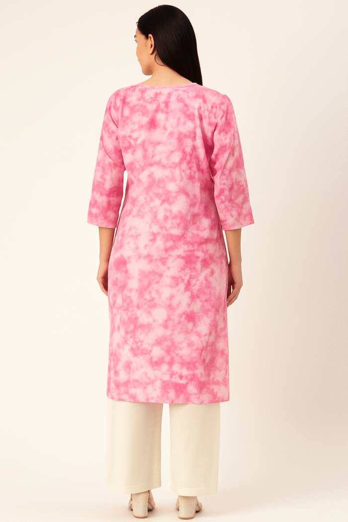 Refresh your ethnic wardrobe with this beautifully crafted pure cotton kurti, designed in soothing tones of pink and white tie & dye print. The soft, breathable cotton fabric ensures all-day comfort, making it ideal for both casual and semi-formal occasions.