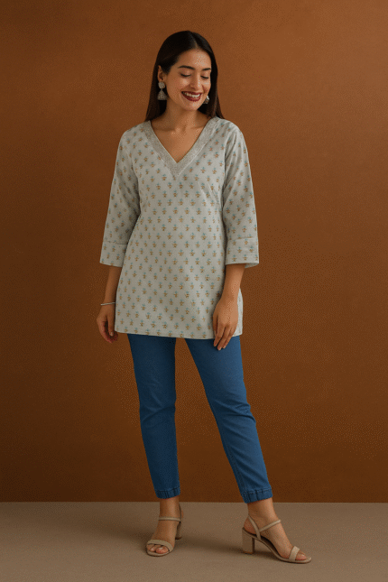 Sparkle Sage Mint Radiance V-Neck Cotton Tunic