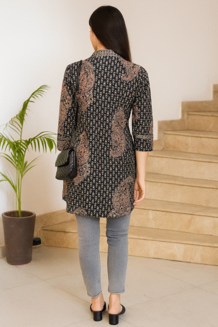 Featuring a flattering notch neckline, 3/4th sleeves, and a relaxed fit, this tunic pairs beautifully with denim, leggings, or trousers.
