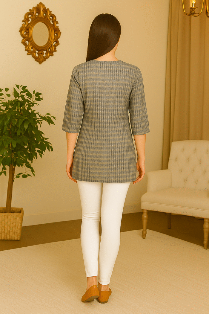 Brighten up your everyday wardrobe with our Grey&White Tunic, crafted from soft and breathable poly cotton.