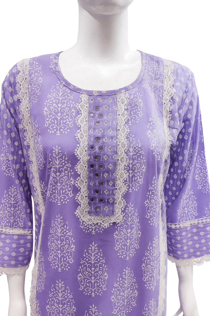 Be the first to review “Lavender Grace Plus-Size Cotton Kurta Set with Lace Detailing”