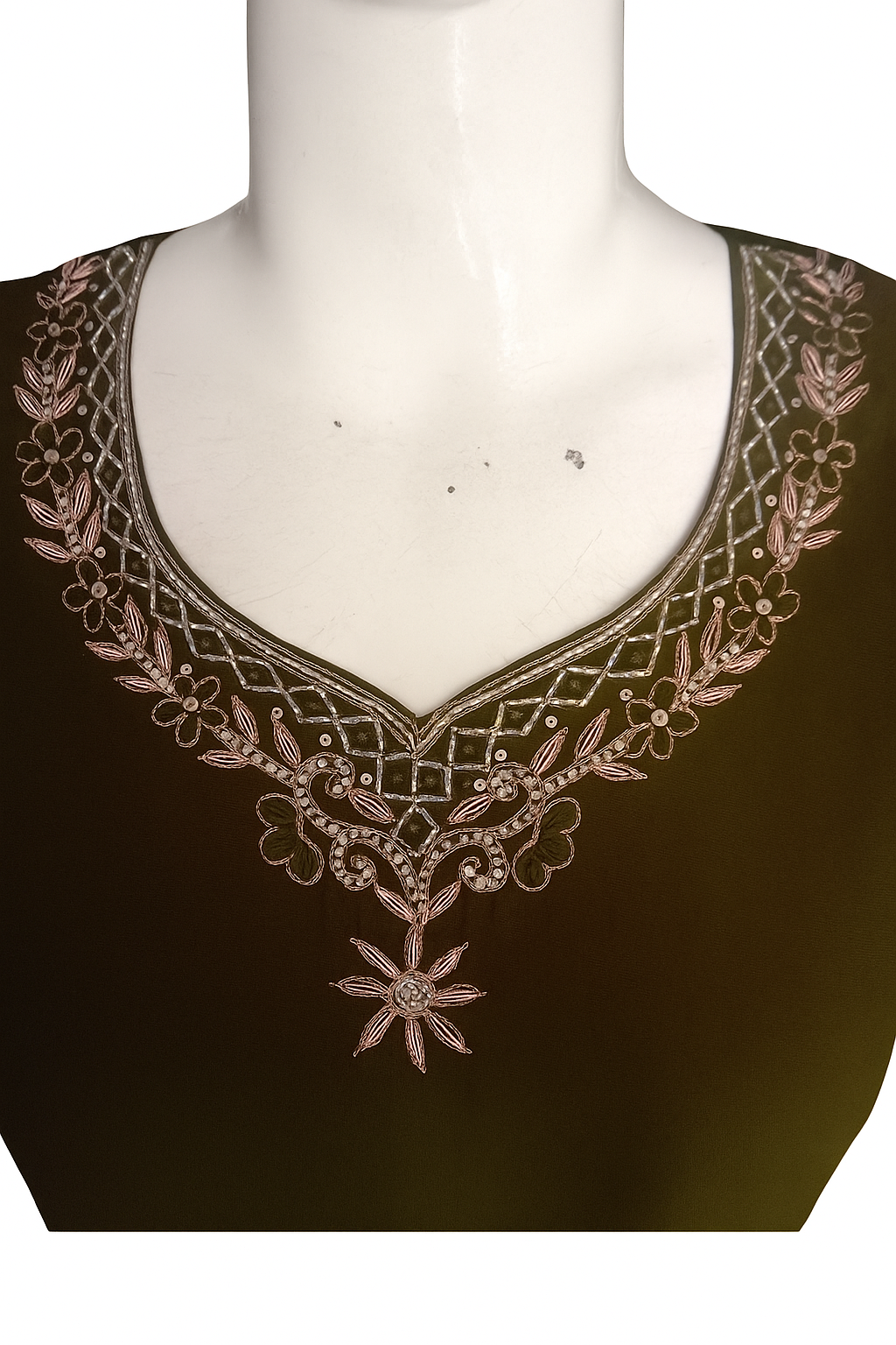- Neck Design: Knotch neckline with sequin, thread and maching zardosi work