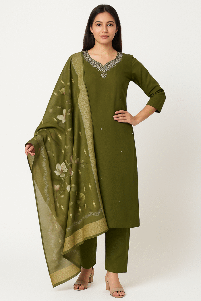 - Includes: Kurta, bottom, and dupatta