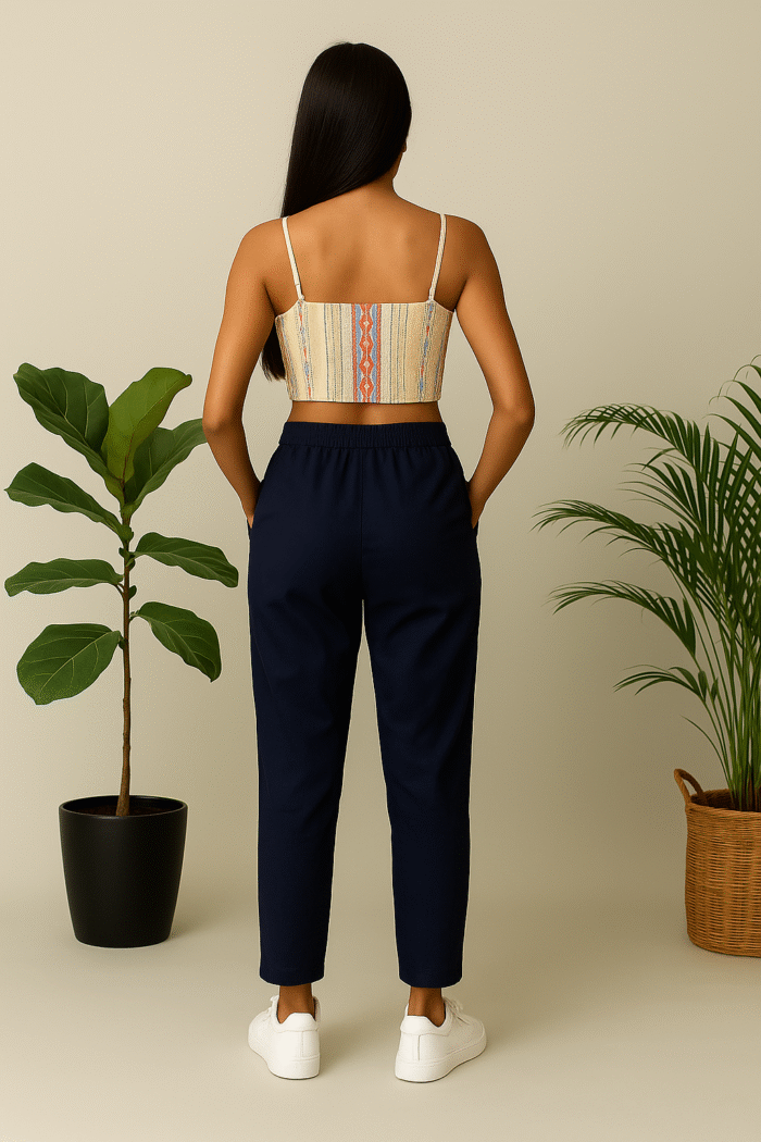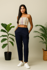 Elevate your casual and smart-casual wardrobe with these stylish navy blue straight pants, crafted from soft and stretchy cotton lycra for all-day comfort. Designed with a flattering high waist, practical side pockets, and a sleek, tailored fit, these versatile bottoms offer both structure and flexibility. Perfectly paired with crop tops, blouses, or kurtas, they are ideal for workdays, outings, or relaxed evenings. The rich maroon shade adds a touch of elegance and depth to your look.