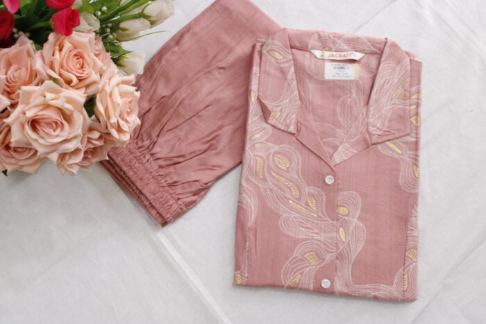 Be the first to review “Peach Vatican fabric collared kurti with pant”
