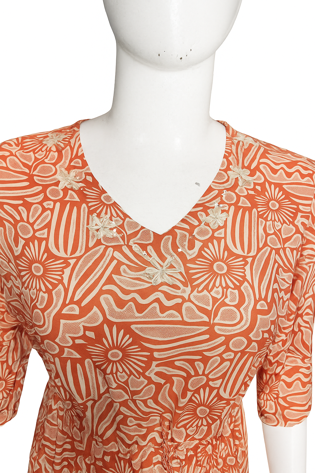 Neck: V-neck with embroidery detail