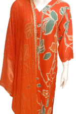 Scarlet Blossom Rayon Suit Set with Naznin Print Duppata