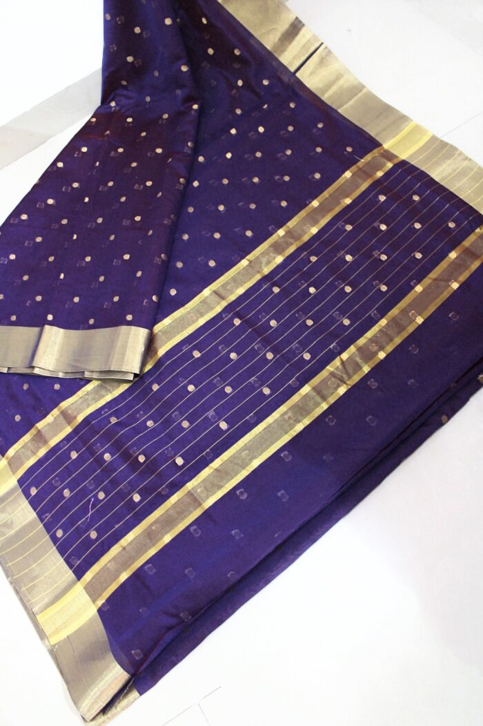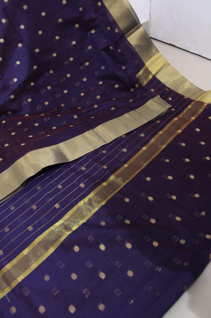 Traditional Purple Banarasi Saree with Golden Zari Polka Dots